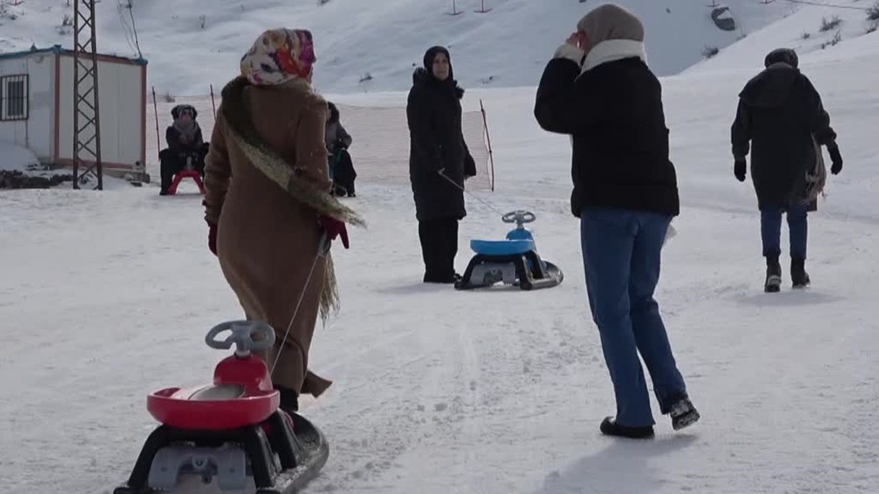 ADEM ve Sosyal Hizmetler Müdürlüğü iş birliğiyle "Aile ve Nüfus 10 Yılı" kapsamında El-Aman Hanı Kayak Merkezi'nde düzenlenen etkinlikte, kadınlar ve çocukları kızaklarla kaydı.