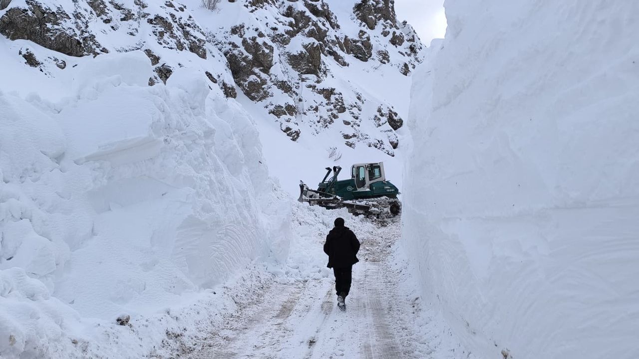 İlçeye yaklaşık 40 kilometre uzaklıktaki yayla yolunda, tipi nedeniyle yer yer 4 metreye kadar ulaşan kar kalınlığı ekiplerin çalışmalarını güçleştiriyor.
