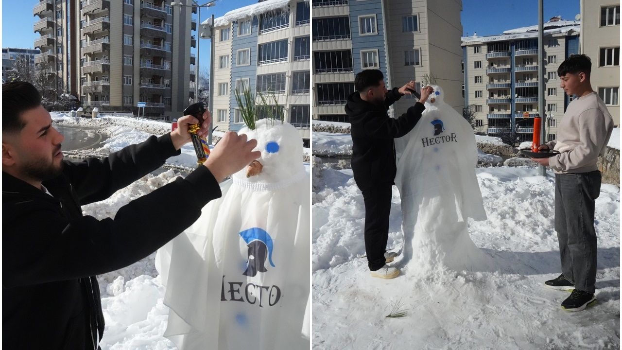 Kar yağışını eğlenceye dönüştürmek için iş yerlerinin önüne bir kardan adam yaptıklarını anlatan saç kesim ustası Enes Baltık, kardan adama anatomik saç kesimi uygulayarak özenle tıraş yaptıklarını söyledi. Baltık, "Muş’ta 6 yıldır kuaförlük sektöründeyim. İki gündür kentte yoğun kar yağışı etkili oluyor. Biz de bu durumu biraz eğlenceye çevirmek istedik. İş yerimizin önüne bir kardan adam yaptık. Saçlarını anatomik saç kesimi yaparak güzel bir şekilde kestik. Vatandaşların yoğun ilgisiyle karşılaştık. Yoldan geçenler durup video ve fotoğraf çekmeye başladı. Tamamen eğlence ve mizah amaçlı yaptık. Biz çok eğlendik ve mutlu olduk" dedi.