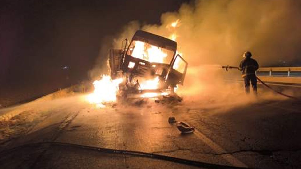Ekiplerin müdahalesiyle söndürülen yangında, tır kullanılamaz hale geldi.