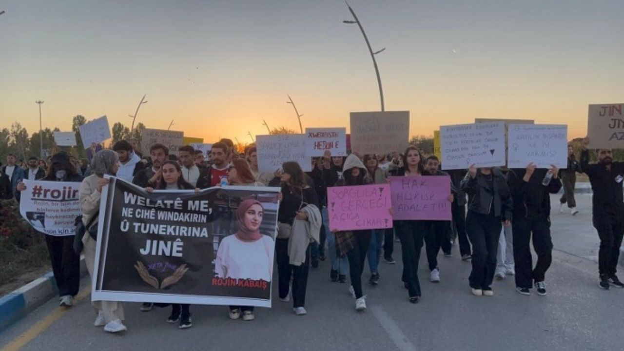 Alkış ve sloganlarla kampüs önüne gelen kitle, yolu trafiğe kapattı. Binlerce kişiye yoldan geçenler de korna ve alkışlarla destek verdi. Kitle sık sık "Jin, jiyani, azadî" sloganlarıyla Rojin Kabaiş'in akıbetini sordu.