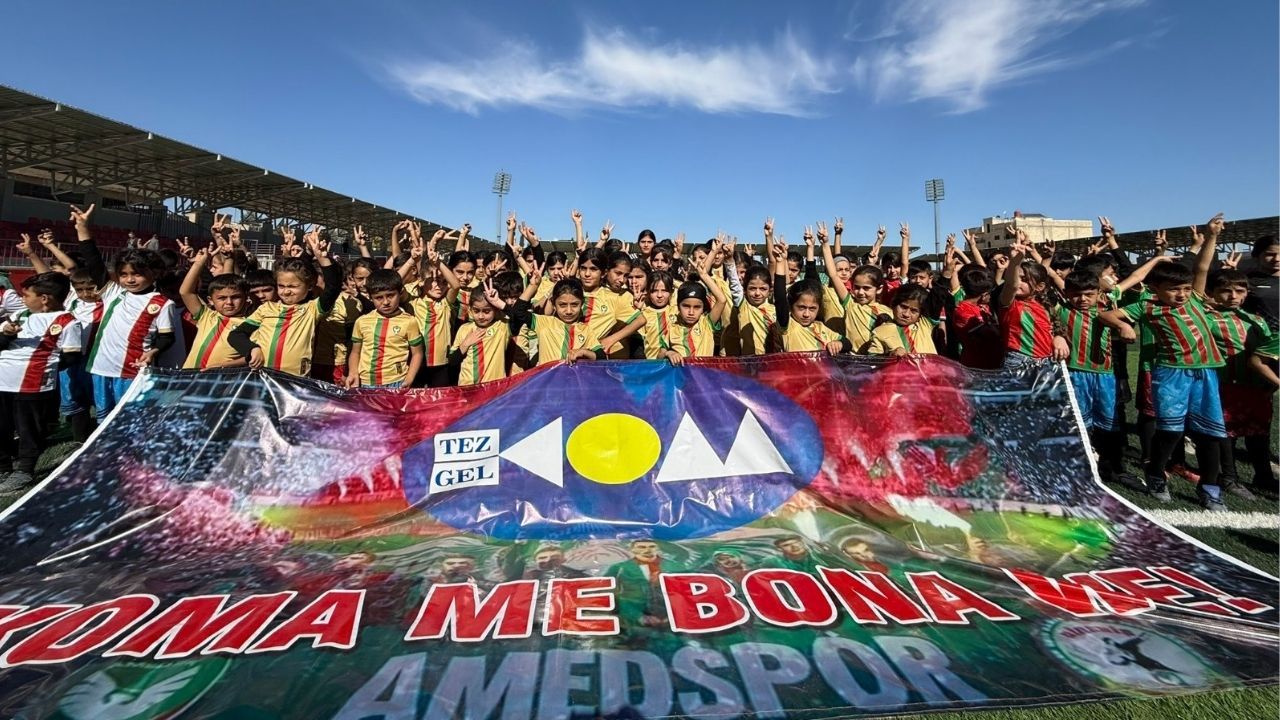 Formalara kavuşan çocuklar, Kobanê Şehit Bawer Agir Stadyumu’nda teşekkür açıklaması yaparak Amedspor’a duydukları sevgiyi dile getirdi. Minik taraftarlar, Amedspor’u yakından takip ettiklerini ve kulüple gurur duyduklarını söyledi.