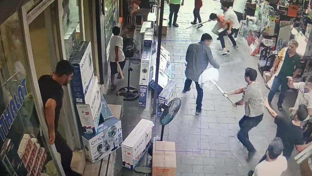 İş yeri, cadde ve otel önünde devam eden kavgada taraflar, ellerine geçirdikleri malzemelerle birbirlerine saldırdı. İhbar üzerine bölgeye polis ve sağlık ekipleri sevk edildi. 7 kişinin yaralandığı kavgayı esnaf, vatandaşlar ve polis ekipleri güçlükle yatıştırdı. İş yeri ve otel önünde güvenlik önlemi alan polis, 8 şüpheliyi gözaltına aldı. Taraflar karakola giderek birbirlerinden şikayetçi oldu.