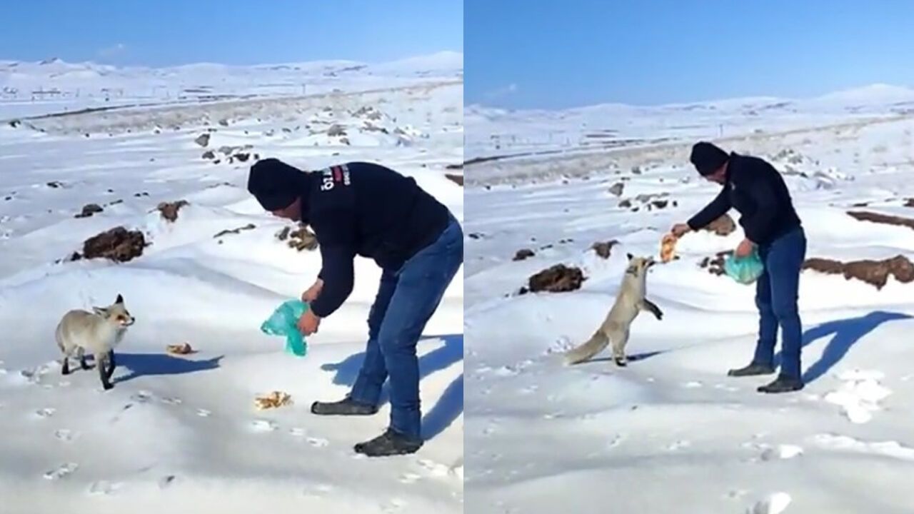 Doğada yiyecek bulmanın zorlaştığı kış günlerinde tilkiye yardım ettiklerini belirten işçiler, hayvanlara karşı duyarlı olunması gerektiğini ifade etti.