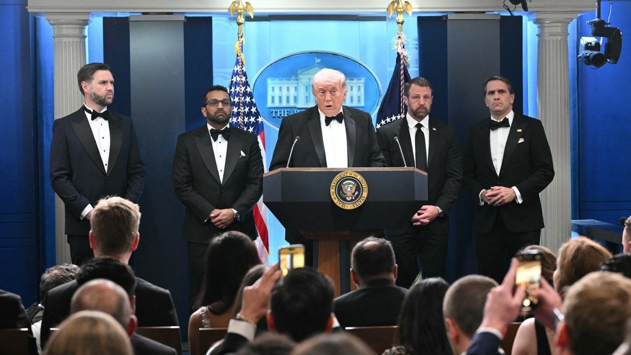 ABD Başkanı Donald Trump, Beyaz Saray Muhabirleri Derneği yemeğinde bağrışma ve silah seslerinin duyulması sonrası güvenlik nedeniyle korumaları tarafından salondan uzaklaştırıldı.