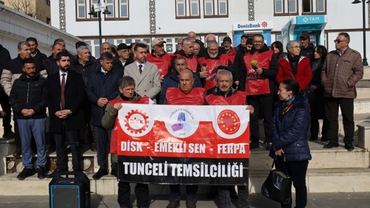 Türkiye Devrimci İşçi Sendikaları Konfederasyonu (DİSK) Devrimci Emekliler Sendikası (Emekli-Sen) Tunceli İl Temsilciliği, düşük asgari ücret zammı ve emekli maaşlarına nedeniyle iktidarı düzenlediği açıklama ile protesto etti.