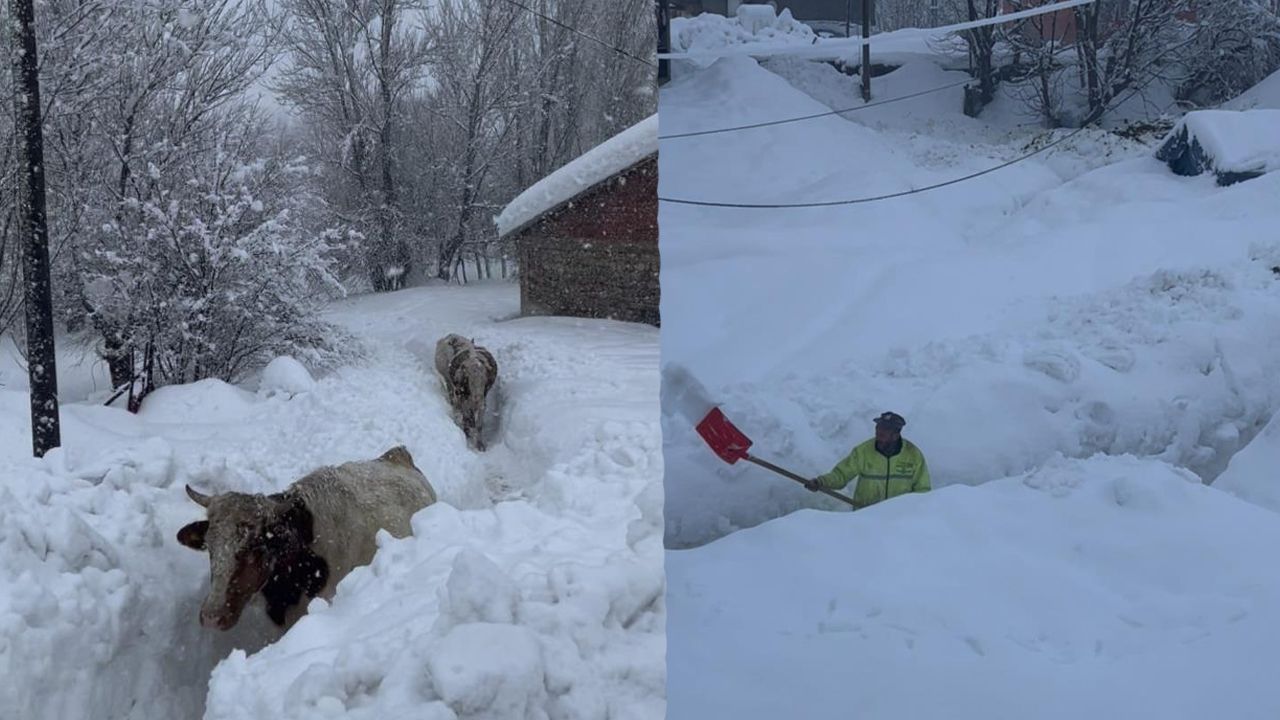 Tunceli’nin Ovacık ilçesine bağlı Koyungölü köyünde etkili olan yoğun kar yağışı hayatı olumsuz etkiledi. Köyde kar kalınlığı 1,5 metreyi aşarken, ahırlardan çıkarılan ineklerin karla kaplı yollarda ilerlemekte zorlandığı anlar kameralara yansıdı. Karın yer, yer boy seviyesine ulaştığı köyde vatandaşlar günlük yaşamın aksamaması için seferber oldu. Köy sakinleri, küreklerle evlerinin ve ahırlarının önündeki karları temizleyerek ulaşımı sağlamaya çalıştı.