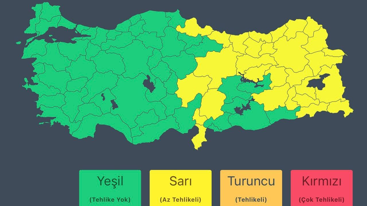 Erzurum, Erzincan, Ağrı, Muş, Bingöl, Bitlis, Van, Hakkari, Batman ve Siirt çevrelerinde; özellikle yüksek kesimler başta olmak üzere güney yönlerden kuvvetli rüzgar ve fırtına bekleniyor.