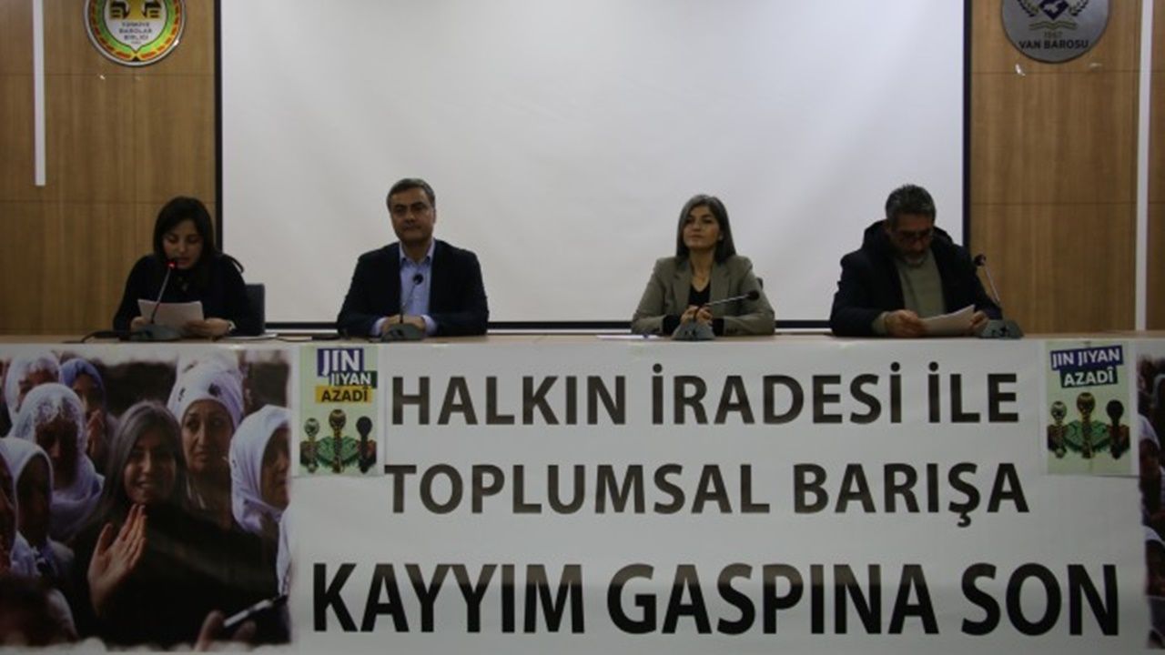 Sinevizyonun ardından söz alan görevden alınarak yerine kayyım atanan Van Büyükşehir Belediyesi Eşbaşkan Abdullah Zeydan, Abdullah Öcalan'ın yaptığı Barış ve Demokratik Toplum Çağrısı'nın barışla sonuçlanması temennisini dile getirdi. 15 Şubat'ta Van Büyükşehir Belediyesi'ne kayyım atandığını hatırlatan Zeydan, aynı tarihin Abdullah Öcalan'a yönelik uluslararası komplonun yıl dönümü olduğunu belirterek, bu durumun tesadüf olmadığını ifade etti. Rojava'ya dönük uluslararası saldırılarla kayyım uygulamalarını aynı siyasal hattın parçası olarak değerlendiren Zeydan, Kürt halkının ulusal birlik ve direnişle bu sürece yanıt verdiğini söyledi. Direnişin öznesinin halk olduğunu vurgulayan Zeydan, "Katliam, gözaltı ve sürgün politikaları Kürt halkını diz çöktüremedi. Bu halk irade sahibidir" dedi.