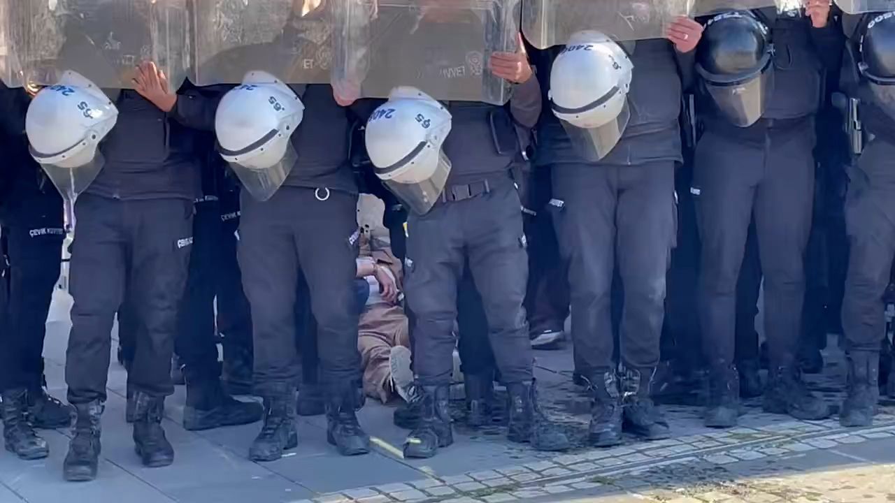 Açıklamanın ardından yürüyüş yapmak isteyen öğrenciler, polisler tarafından ablukaya alındı. Ablukaya direnen öğrenciler polis tarafından yere yatırılıp ters kelepçelendi. 10 öğrencinin gözaltına alındığı belirtildi.
