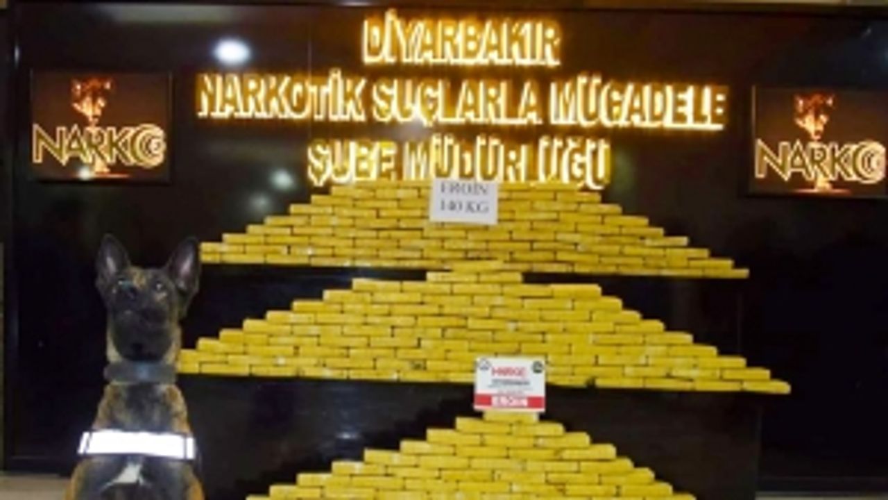 Diyarbakır’ın Sur ilçesi Silvan Yolu uygulama noktasında yapılan denetimlerde dedektör köpeklerİ “Risko” ve “Çiko”'nun da yardımıyla 140 kilogram uyuşturucu madde ele geçirildi.