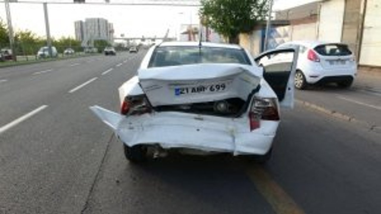 Diyarbakır’da ticari taksi sürücü sehir halinde iken bir otomobile arkadan çarptı. Çarpmanın etkisiyle kemerini takmayan yolcu yaralandı.