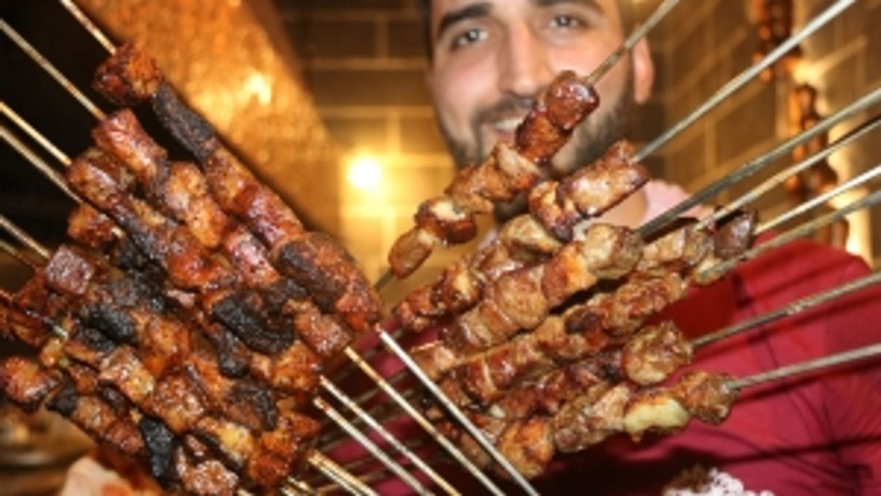 Esnaf bayram tatilinde ciğer ve tatlıyla bayram etti