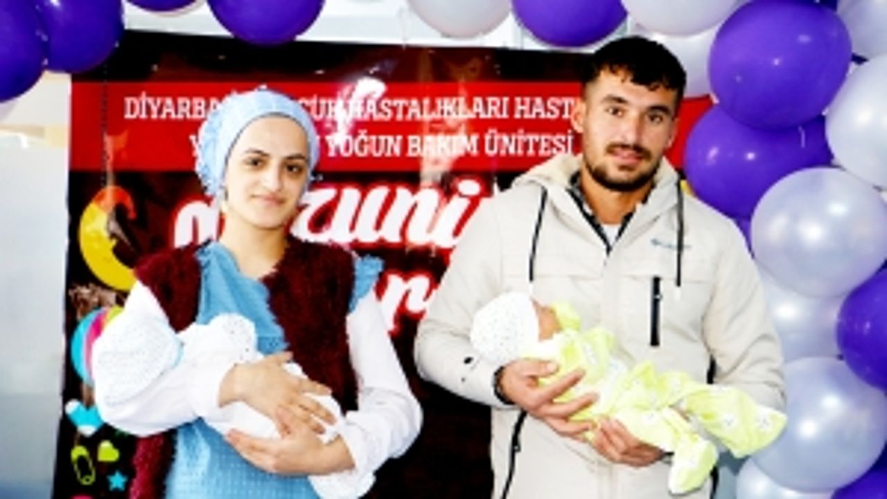 Diyarbakır’da yaklaşık 35 haftalık dünyaya gelen ikiz bebekler, Diyarbakır Çocuk Hastalıkları Hastanesi’nin yeni doğan yoğun bakım ünitesinde 2 hafta süren tedavilerinin ardından hastaneden mezun edildi.