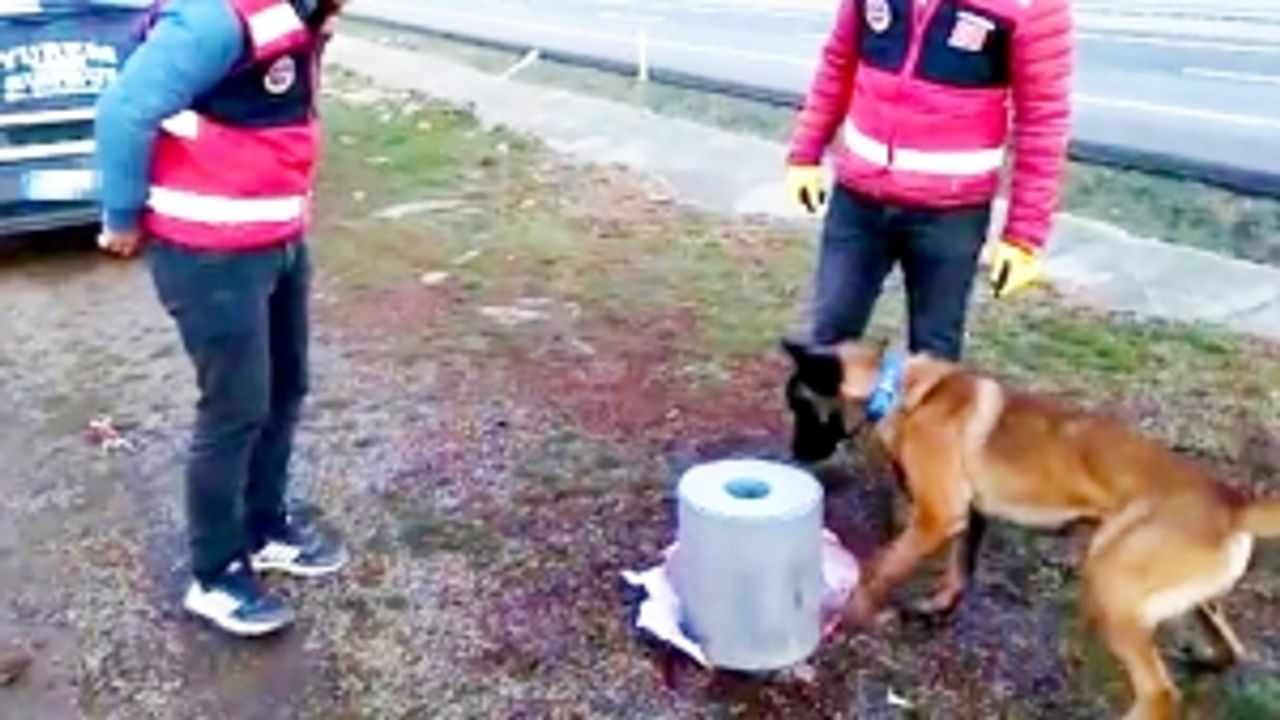 Diyarbakır'da şehirlerarası yolcu taşıyan otobüste yapılan aramada, emanet olarak verilen özel tasarımlı silindirin içinde 5 kilogram esrar çıktı.