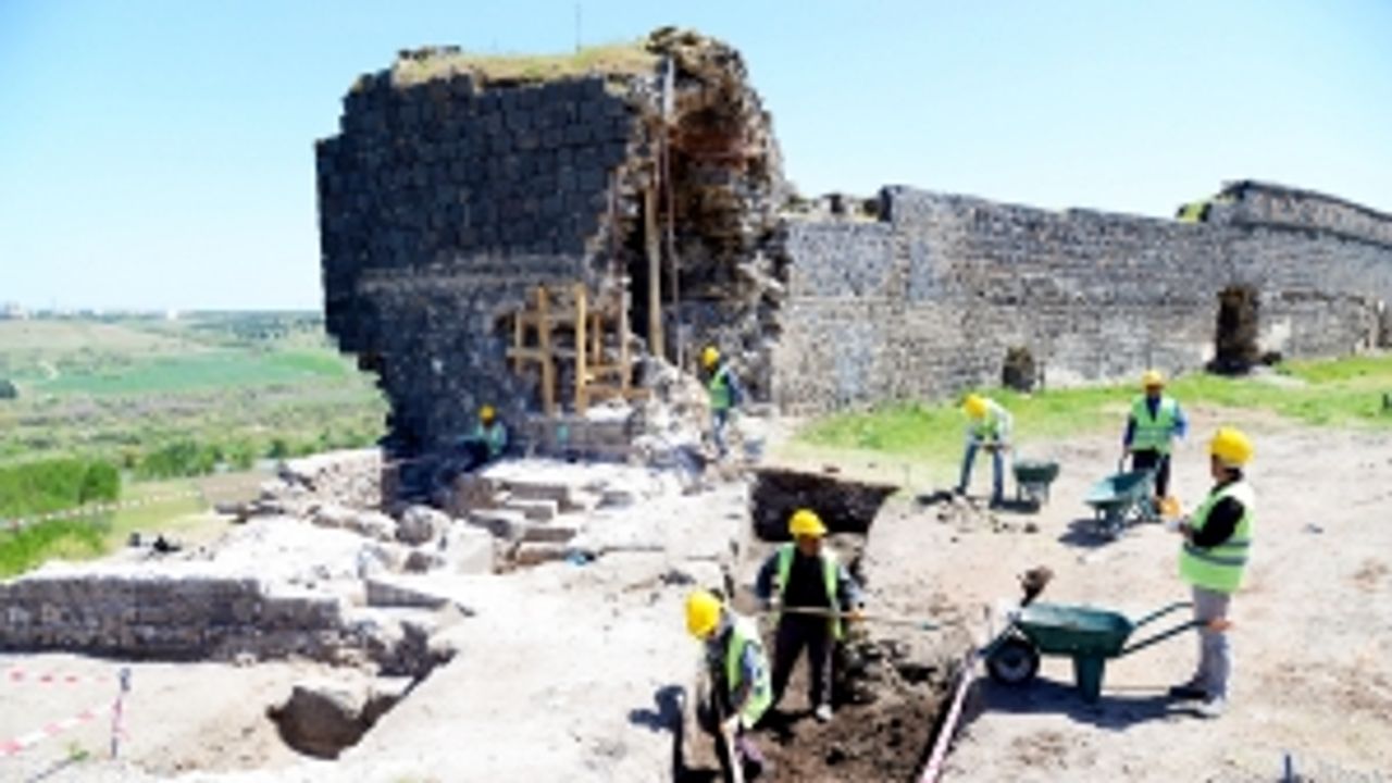Diyarbakır Büyükşehir Belediyesince yürütülen 5. etap restorasyon çalışmalarında 71 ve 72 nolu burçları birbirine bağlayan sur duvarları ve payandaların izine rastlandı.