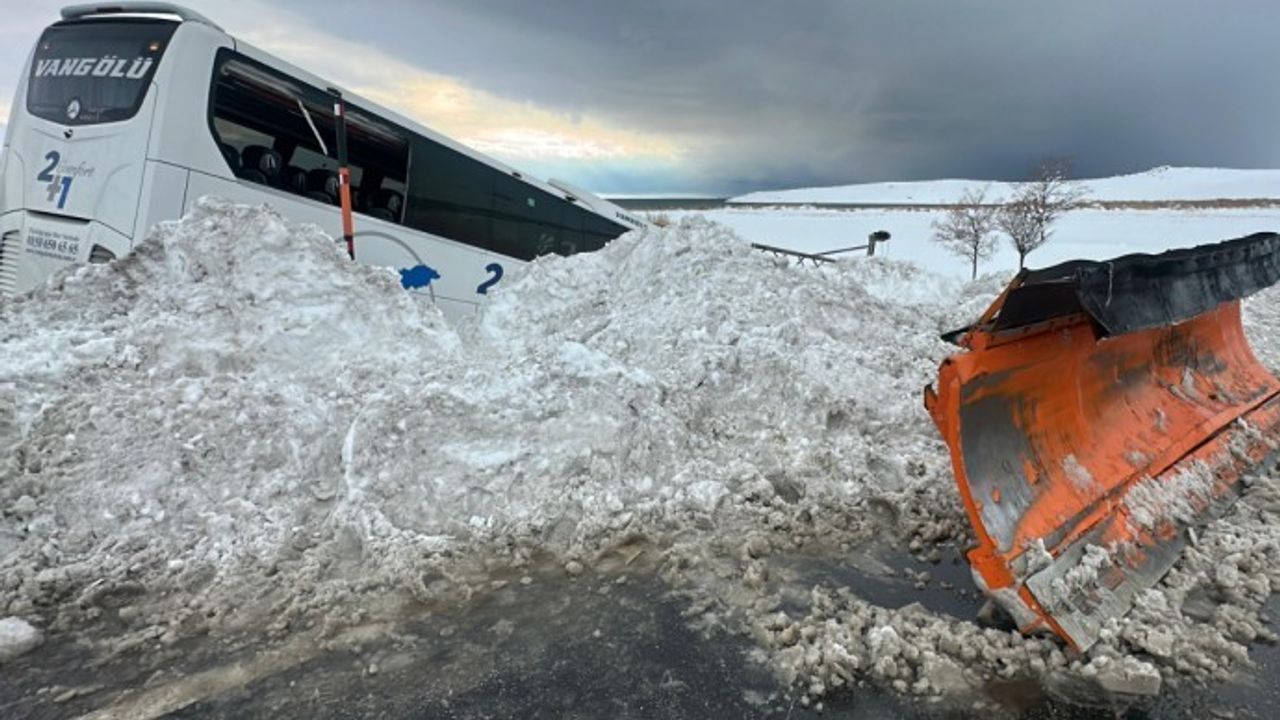 Van-Erciş karayolunda şehirlerarası yolcu otobüsü, Karahan Mahallesi yakınlarında kar küreme çalışması yapan araca çarptıktan sonra yoldan çıktı. İhbar üzerine kaza yerine sağlık, jandarma ve UMKE ekipleri sevk edildi.
