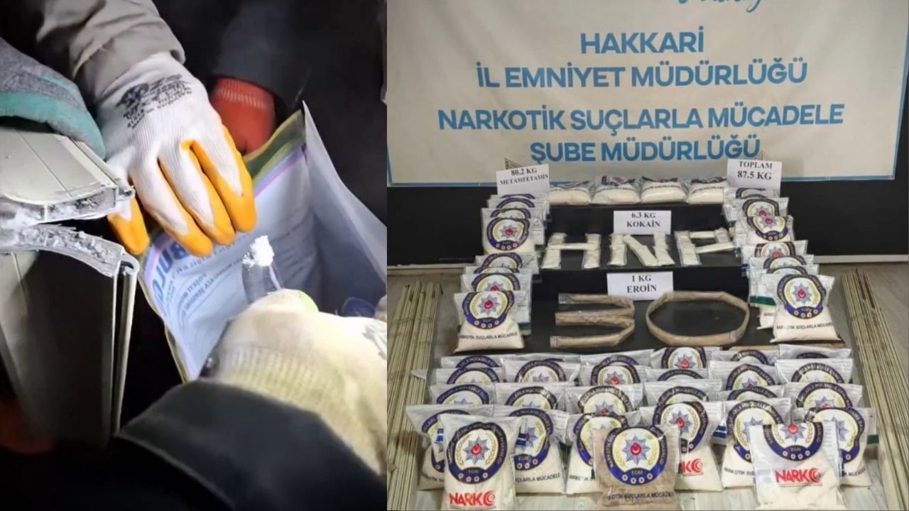 Yapılan çalışmalarda; Yüksekova ilçesinde Narkotik köpeği ile bir kamyonette yapılan aramada zula diye tabir edilen bölgelerde 80 kilo 200 gram metamfetamin maddesi, 6 kilo 300 gram kokain maddesi ile 1 kilo eroin maddesi olmak üzere toplam 87 kilo 500 gram uyuşturucu madde ele geçirildi.